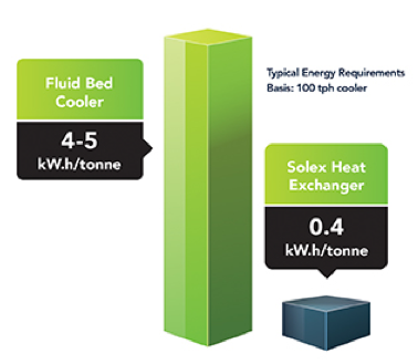 While fluid bed coolers and rotary drum coolers typically consume around 5 kW.h/tonne of sugar, these MBHEs from Solex average just 0.4 kW.h/tonne of sugar, making it the most energy efficient sugar cooling solution available.