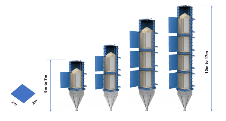 Conventional rotary drums or fluidized beds require large horizontal footprints that typically measure up to several metres in diameter and 10s of metres in length. In comparison, plate-based MBHEs are built with a vertical orientation, typically with a plan area of two metres by two metres.
